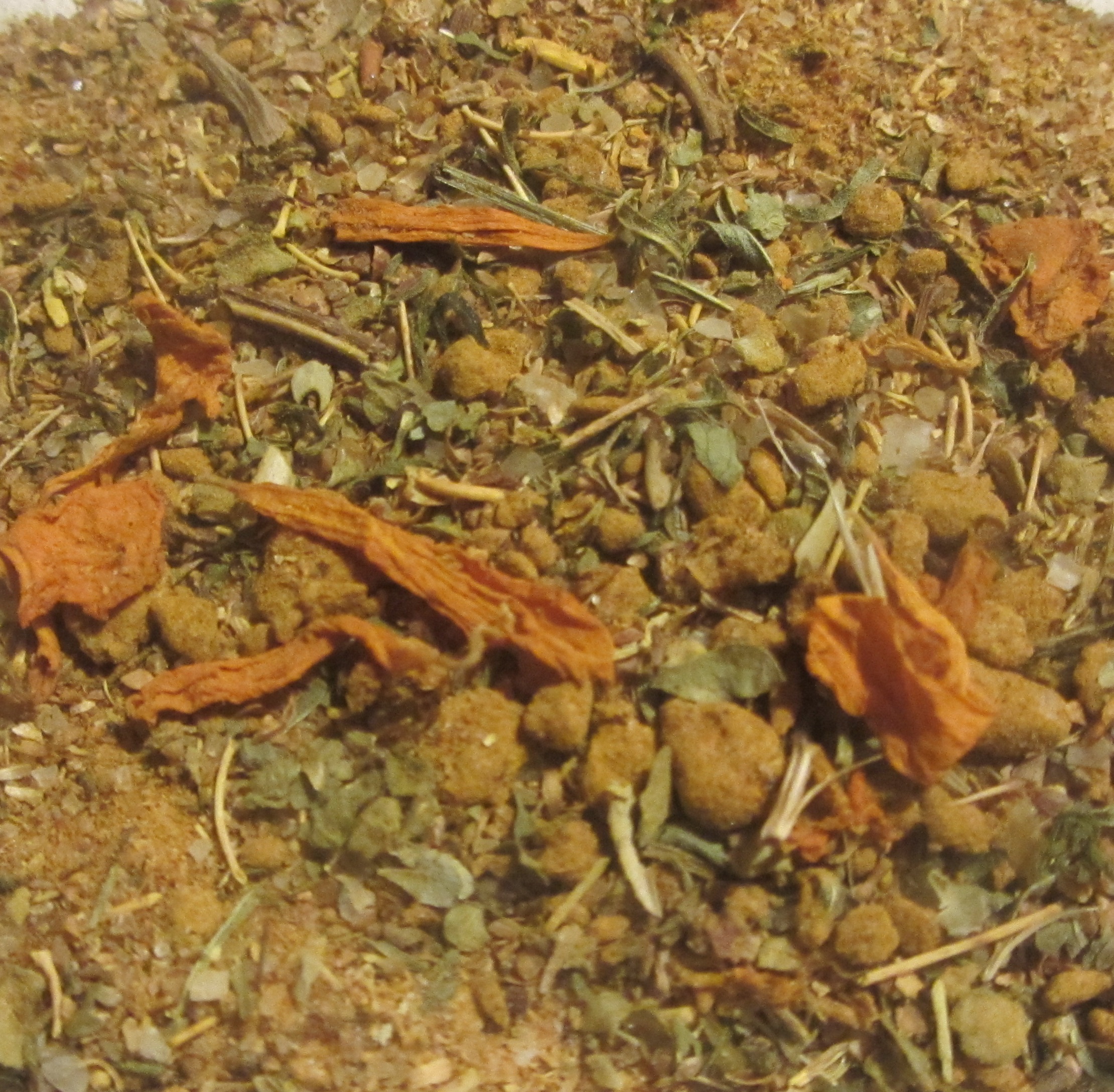 - столовая ложка семян молотого кориандра, хмели-сунели, базилика, укропа, петрушки, сушеной зеленой кинзы, чабера, майорана;