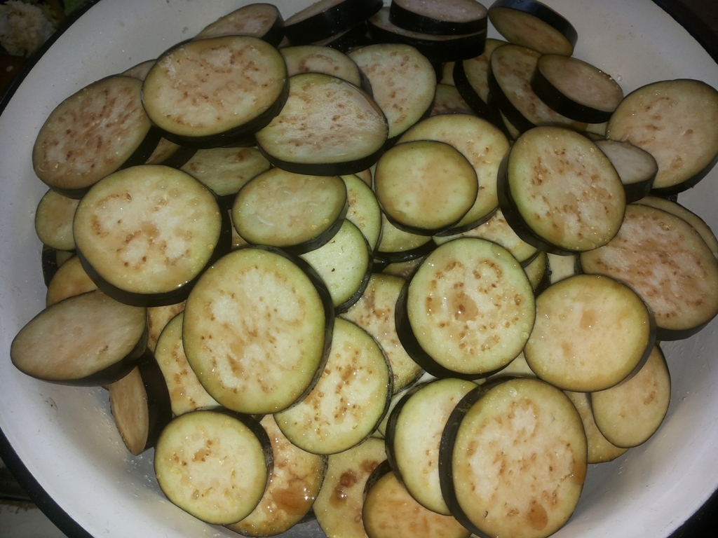 Будьте готовы, что баклажаны при жарке очень сильно вбирают масло. Лучше не начинать готовить, не имея в запасе 1 литра растительного масла.