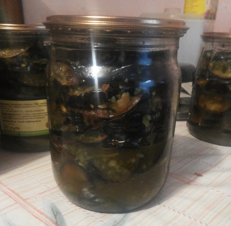 Если после того как все баклажаны уложены в тару для консервирования, у вас остается немного маринада, можете добавить его сверху в банки. Заполненные банки плотно укупорить и хранить в прохладном месте.