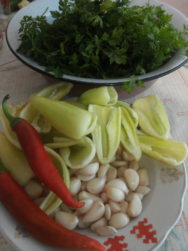 Перец горький и сладкий помыть. Сладкий перец очистить от семян и хвостиков, порезать на крупные дольки. У горького перца срезать только плодоножки, а семена не вычищать, так как семена содержат очень много необходимой в данном случае остроты.