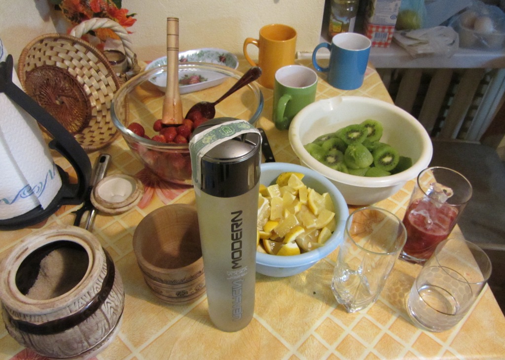 5. Из посуды надо иметь обычную бытовую ступку с пестиком, чтобы давить фрукты, или банально тяжелую столовую ложку и чашку. Ну и естественно красивые прозрачные стаканы для самого готового коктейля.