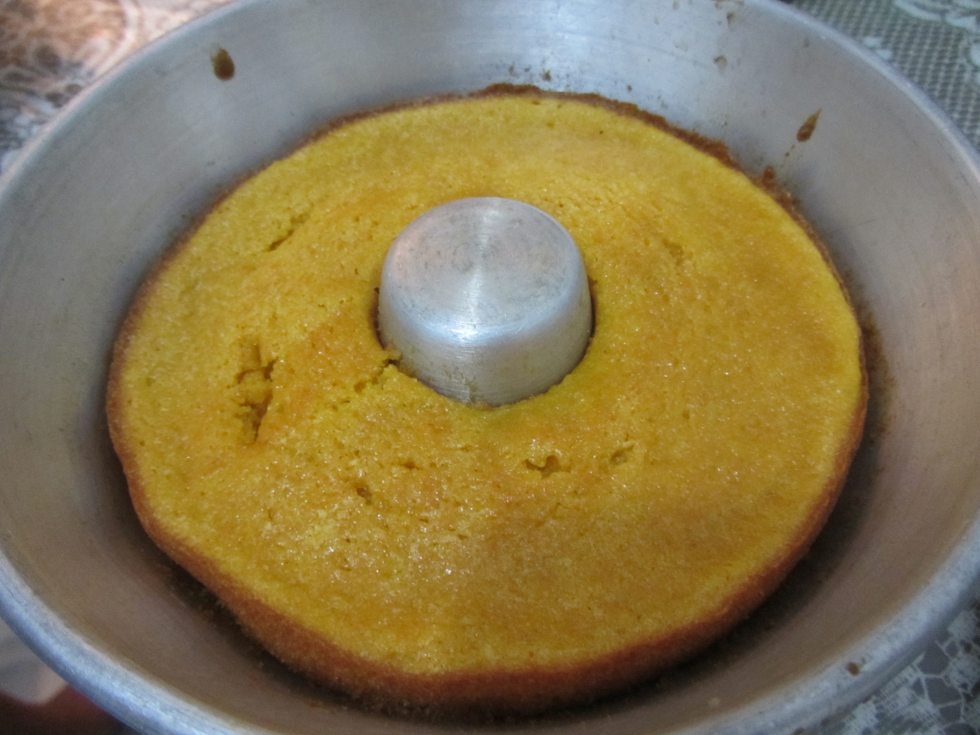 Хорошо, что у меня в Бразилии была традиционна форма для выпекания кексов с дыркой в середине, и еще я нашел еще какую-то просто плоскую алюминиевую форму, что-то вроде большого блюда.
