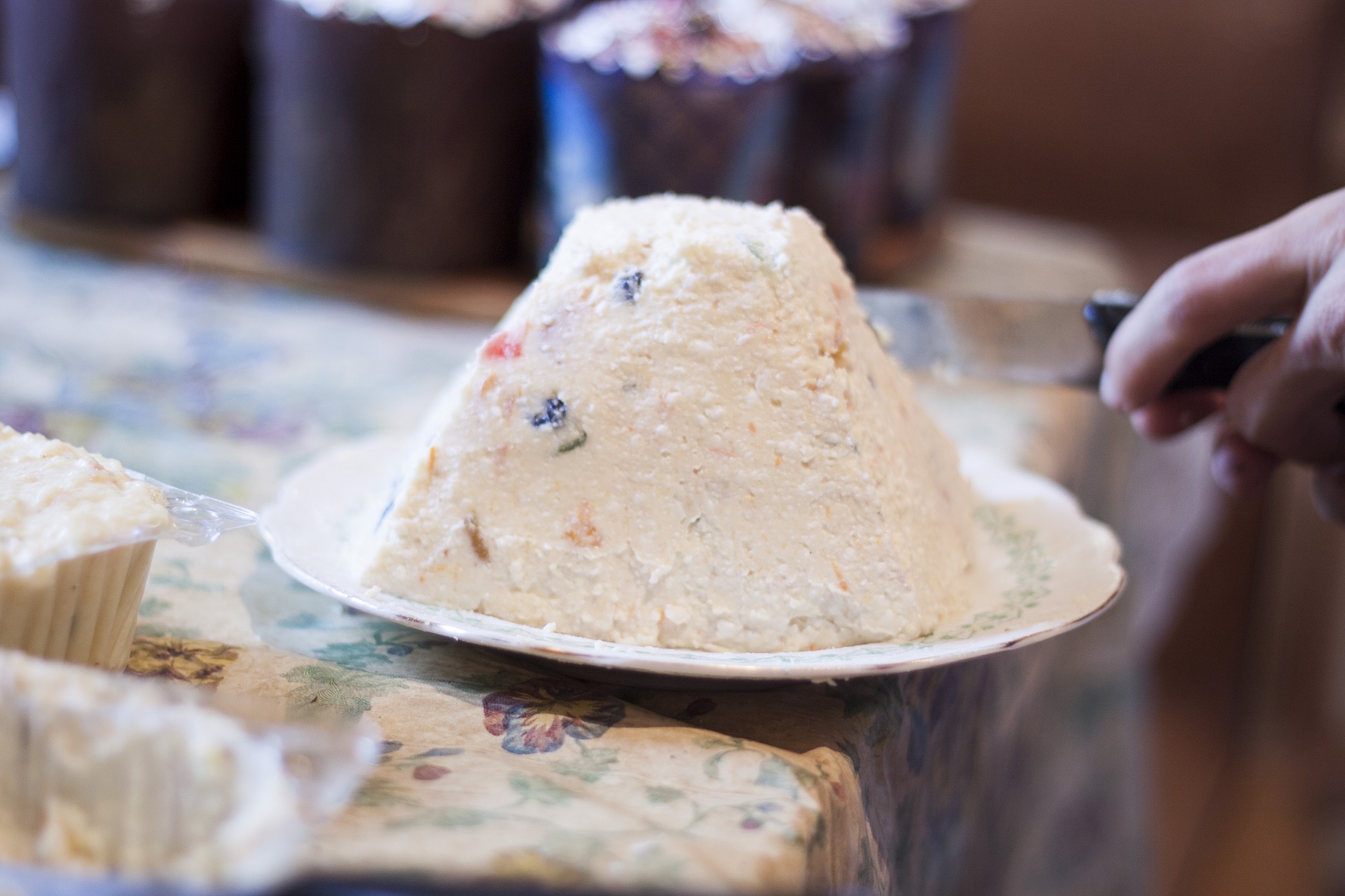 А вот если вы делали пасху без формочки, то вам, чтобы соблюсти традиционный стиль, необходимо для начала аккуратненько ножом не спеша сформировать из творожной массы усеченную пирамиду, подымая её концы все выше и выше, а затем разровнять верхушку. Это может занять немного времени, но зато получиться красиво и своими руками.