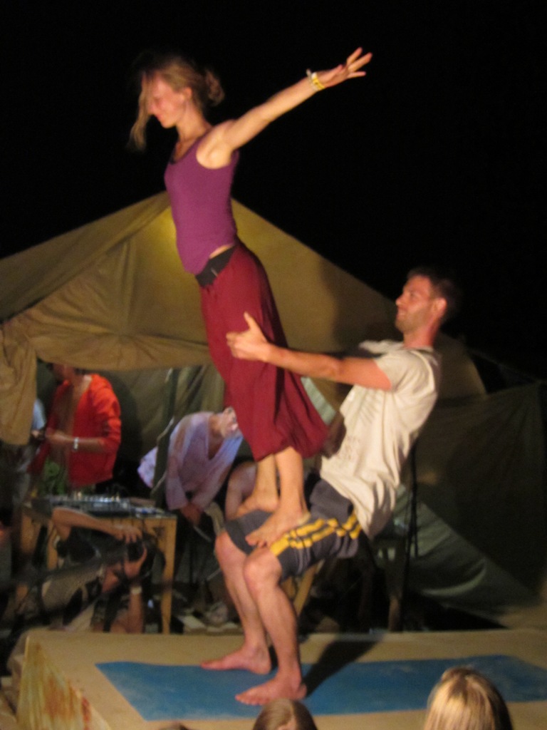 При этом в 23.00 после окончания эзотерических тренингов сразу же начинается ночная шоу программа, с участием отличных в основном этнических музыкантов и барабанщиков с разжиганием большого костра, и не редко даже хождения по углям. А также в присутствии неутомимых поклонников жонглирования огненными поями, веерами, шестами, кометами, и другими атрибутами лучших огненных шоу мира.