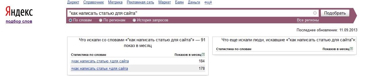 И не забывайте следить за популярностью в поиске данной публикации, если вы еще помните, то её название «как написать статью для сайта» ищут в Яндексе 325 человек в месяц по общему запросу, а именно эту фразу в точности набирает 91 человек в месяц. Это очень важно в кавычках не должно быть ноль, иначе вашу статью возможно никто не захочет искать и соответственно читать.