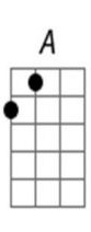 - Зажав третью струну на втором ладу указательным пальцем, четвертую струну на втором ладу ― средним пальцем, и вторую струну на третьем ладу ― безымянным пальцем, извлекается звук мажорного аккорда A (ля). Он является основным и используется в большинстве песнях на укулеле.