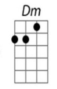 • Для игры минорного аккорда Dm (ре-минора) указательный палец должен произвести зажим второй струны на первом ладу, средний палец ― первой струны на втором ладу и безымянный палец ― третьей струны на втором ладу.