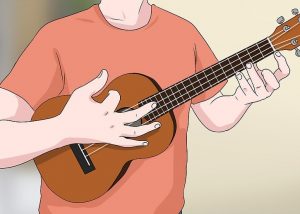 Укулеле следует прижать к груди мышечной частью правого предплечья, в это же время упор корпусной части музыкального инструмента делается в локтевой сгиб. При правильном расположении укулеле музыкант играет, не пользуясь помощью левой руки, а положение инструмента остаётся неизменным