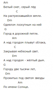 Теперь зная шесть основных аккордов и постановку рук, попробуем соединить все в едино и сыграть нашу первую песню.