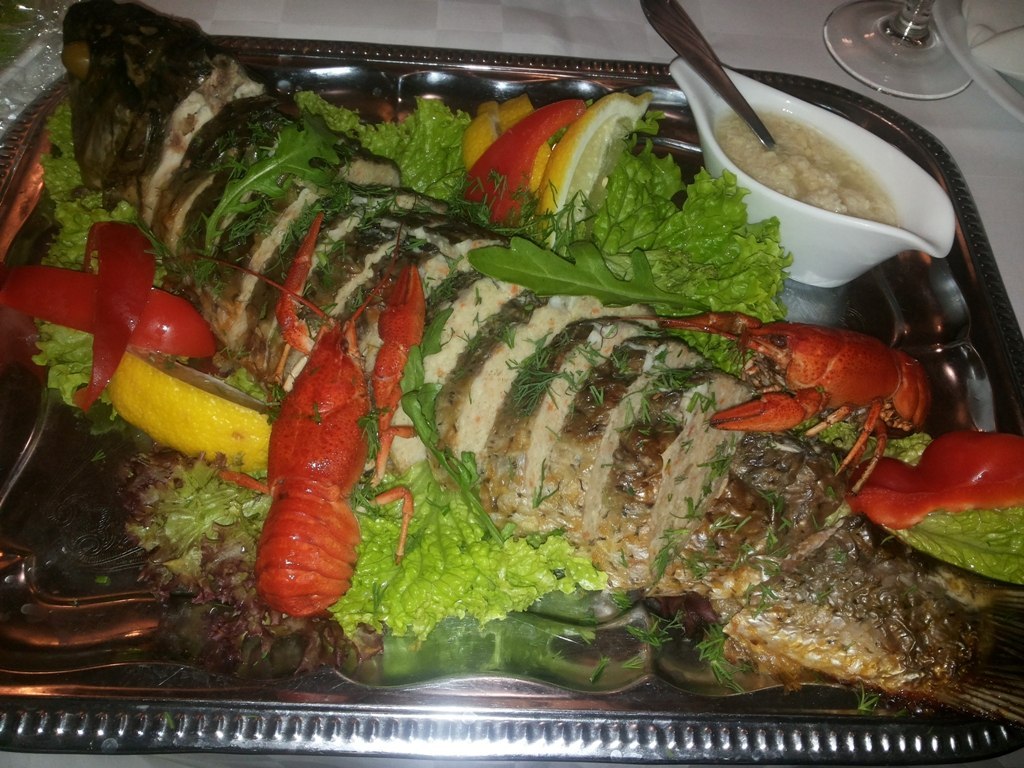 Самое время поговорить о том, с чем подают фаршированную рыбу. Хоть фаршированная рыба и очень вкусное и сытное блюдо, к нему требуется еще гарнир. Он делает рыбное блюдо привлекательным, более сытным. Подчеркивает его вкус, увеличивает его объем и вес.