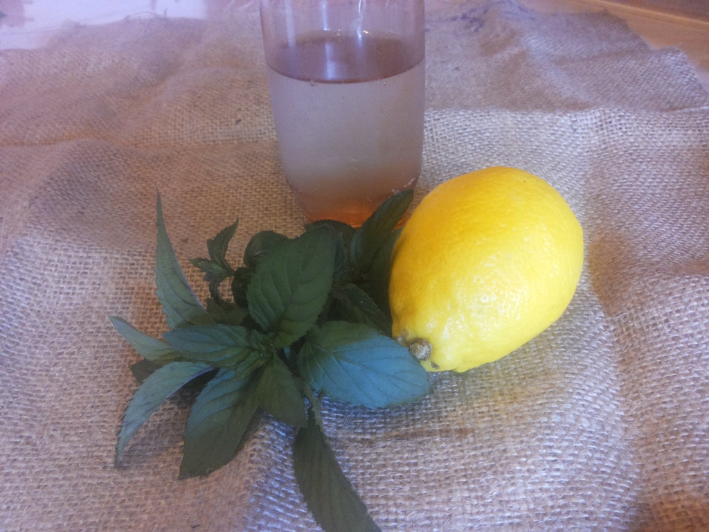 Мяту промыть под проточной водой и вместе с лимоном поместить в ступку.
