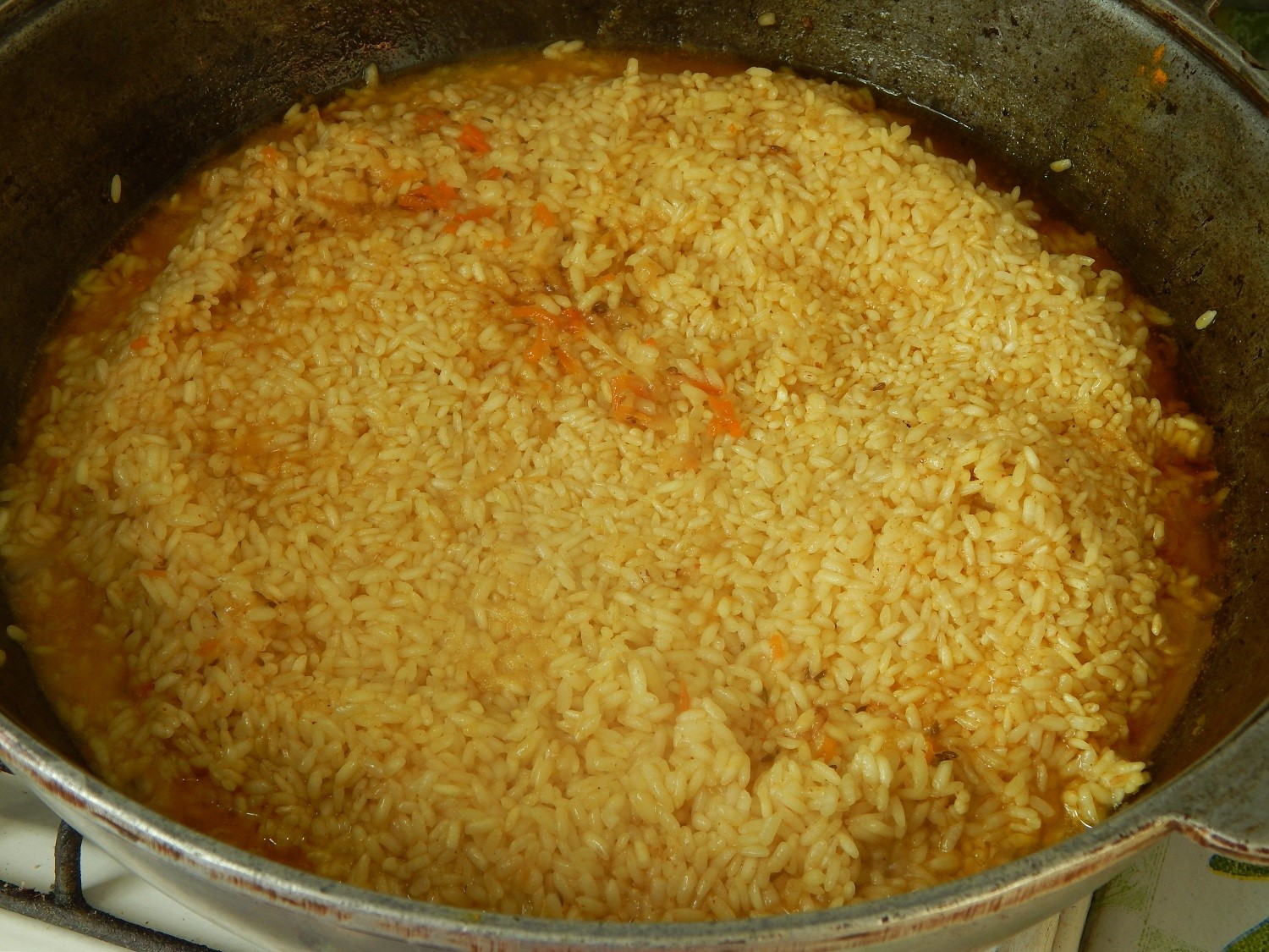 Если рис все еще жесткий, то нужно добавить сверху еще немного воды и продолжить выпаривание. Чтобы рис не требовал в процессе приготовления много воды, его можно промыть заранее и залить холодной подсоленной водой на два часа.