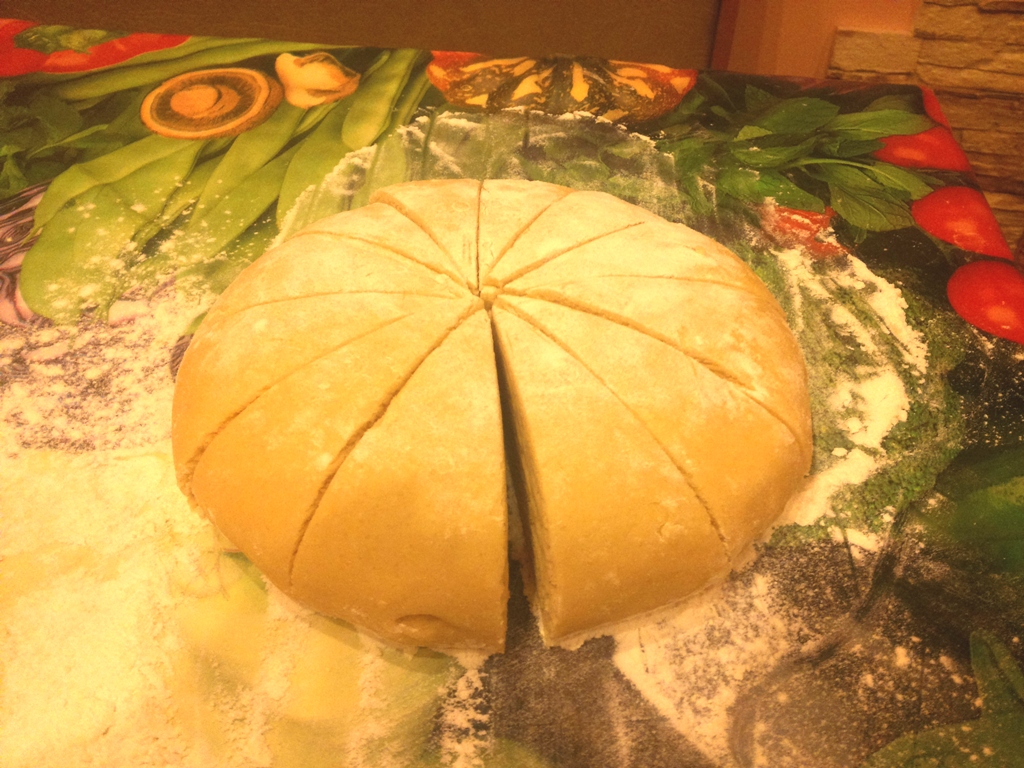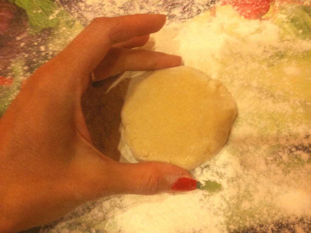 Стол обильно посыпьте мукой. Из кусочка сформируйте круглую лепешку