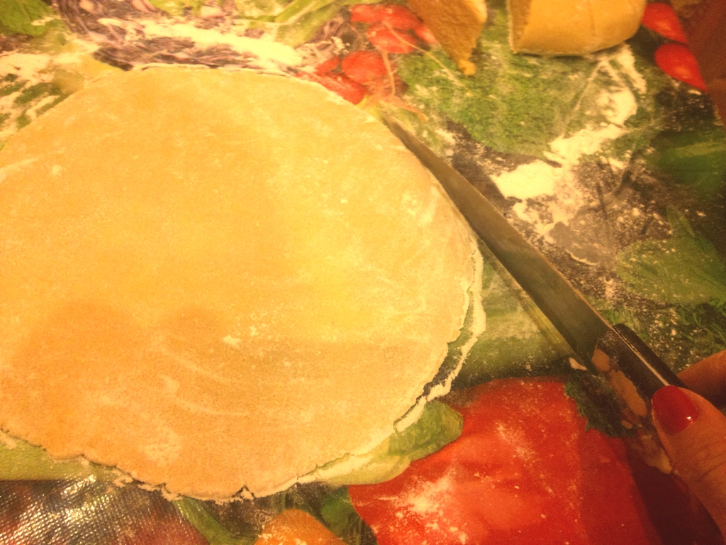 Сразу формируйте приблизительную форму и размер вашего коржика, чтобы не переделывать и не обрезать его. Немного подравнивайте, приглаживая край острием ножа.