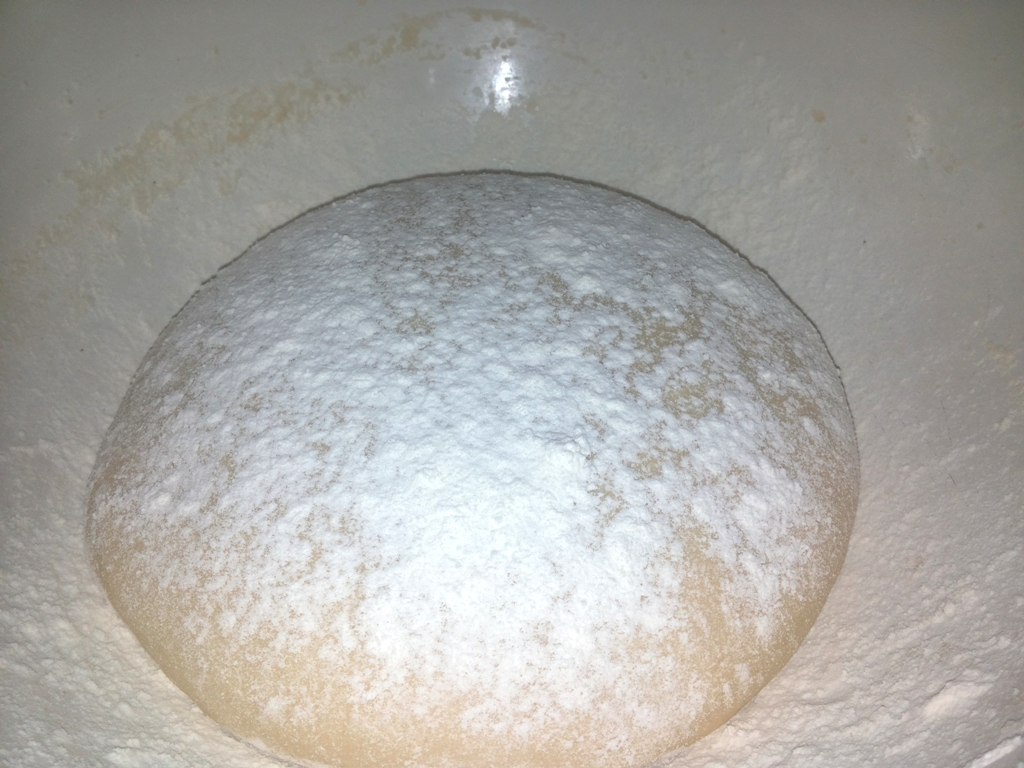 Когда тесто хорошо вымешено, выложите его в присыпанную мукой, глубокую миску. Притрусите немного сверху мукой. Прикрыв крышкой, поставьте в холодильник и оставьте настаиваться на ночь. Так как тесто достаточно тугое, нужно время, чтобы оно гомогенизировалось и стало однородным. Это позволит ему быть эластичным, хорошо раскатываться и не рваться.