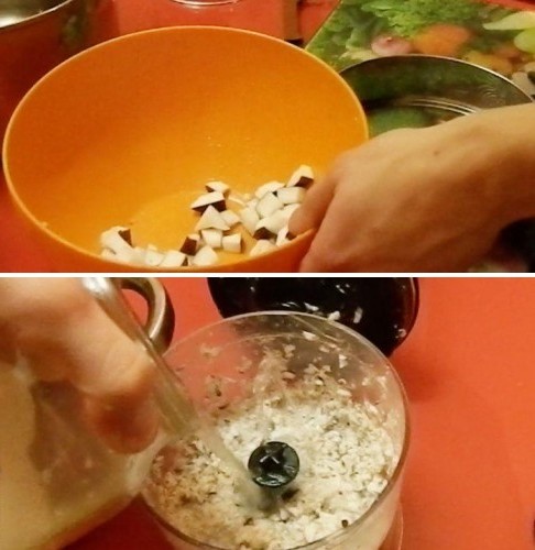 Нарезаем мелко мякоть кокоса. Закидываем нарезанную мякоть в блендер. И если не выпили сразу кокосовую воду, можно добавить и ее.