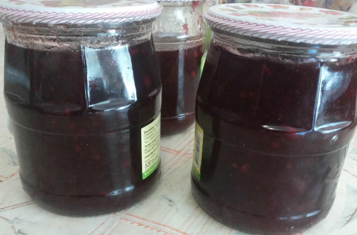 Готовое варенье расфасовать по стерильным банкам и укупорить.