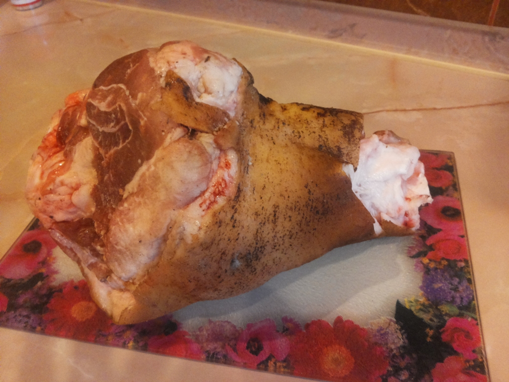 Прежде чем приступить непосредственно к маринованию свиной рульки, ее необходимо хорошо очистить. Кожу на ноге хорошенько почистить ножом, потом обмыть и просушить.