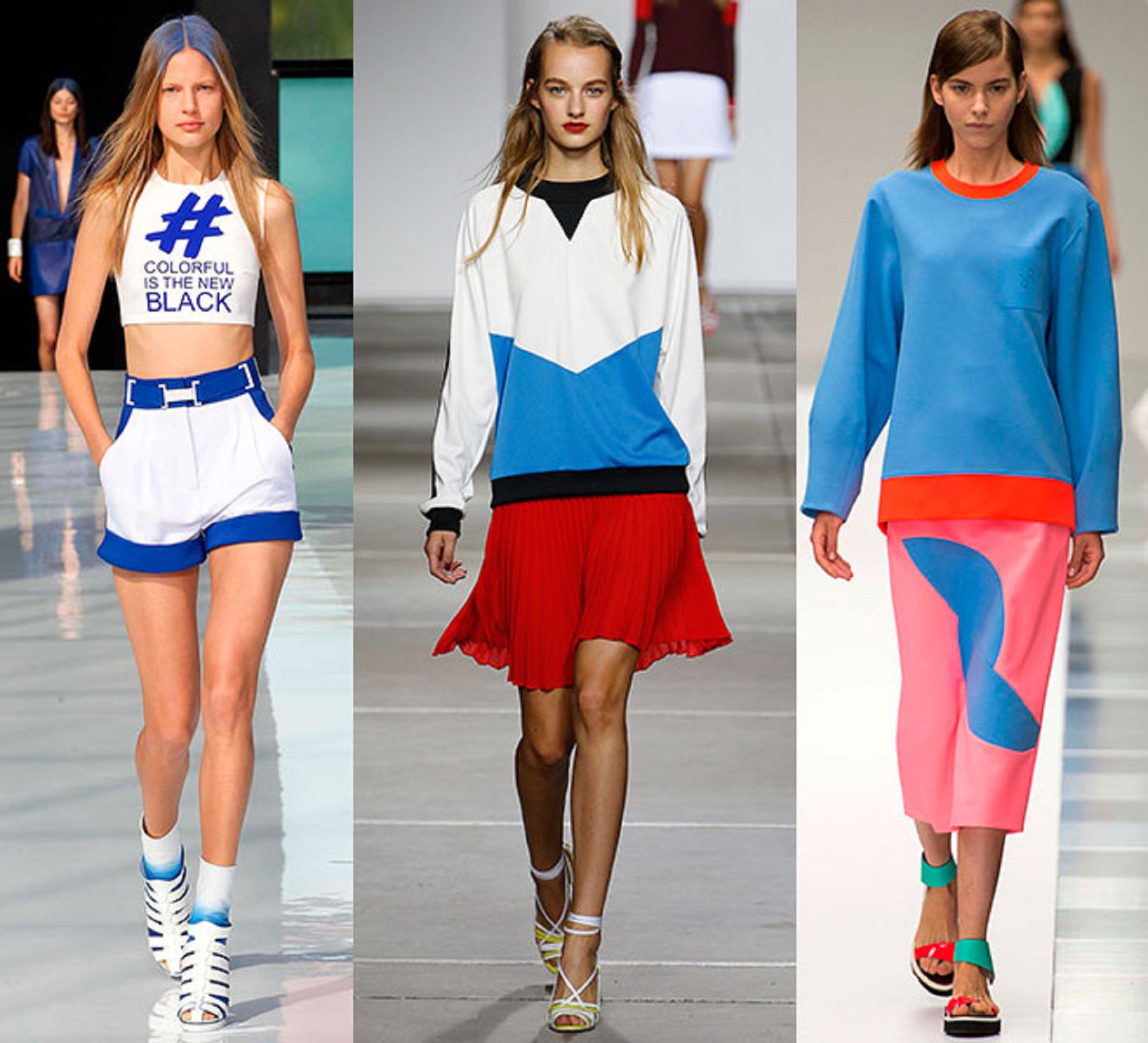 Синтез ярких красок, безусловно, — характерная черта спортивного шика, но их не должно быть более трех, иначе от наряда начнет рябить глазах. В случае, если выбирается какая-то очень пестрая вещь, то лучше дополнить ее монохромными предметами гардероба. Очень любим и белый цвет, который сможет стать отличной базой и гармонировать с любым другим. Все цвета и оттенки комплекта должны сочетаться между собой.