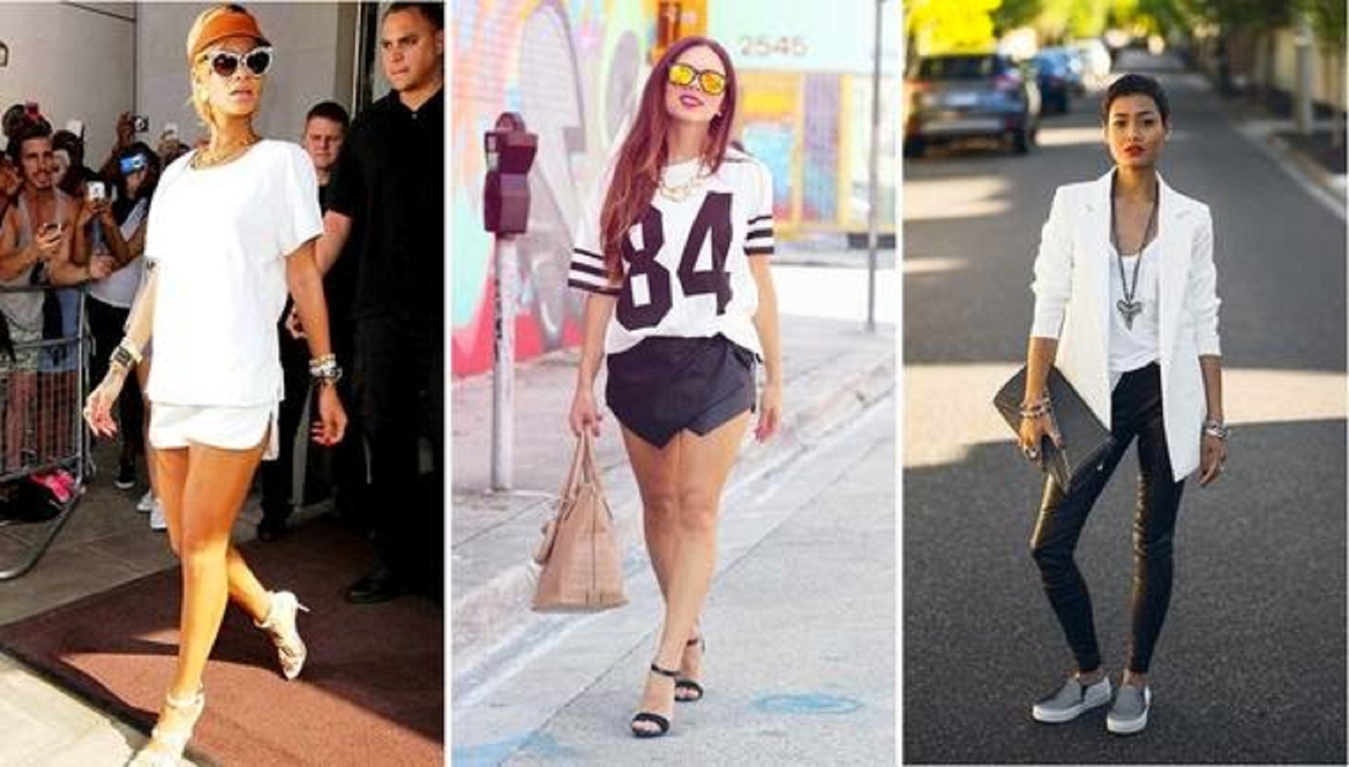 Лучше всего создавать образы спорт-шик при помощи базовых универсальных предметов одежды, близких к спортивным, таких как белая майка, темный кардиган, трикотажное платье, яркая свободная футболка и т.д. Это те вещи, которые впишутся в любые «спорт-шиковые» сочетания.