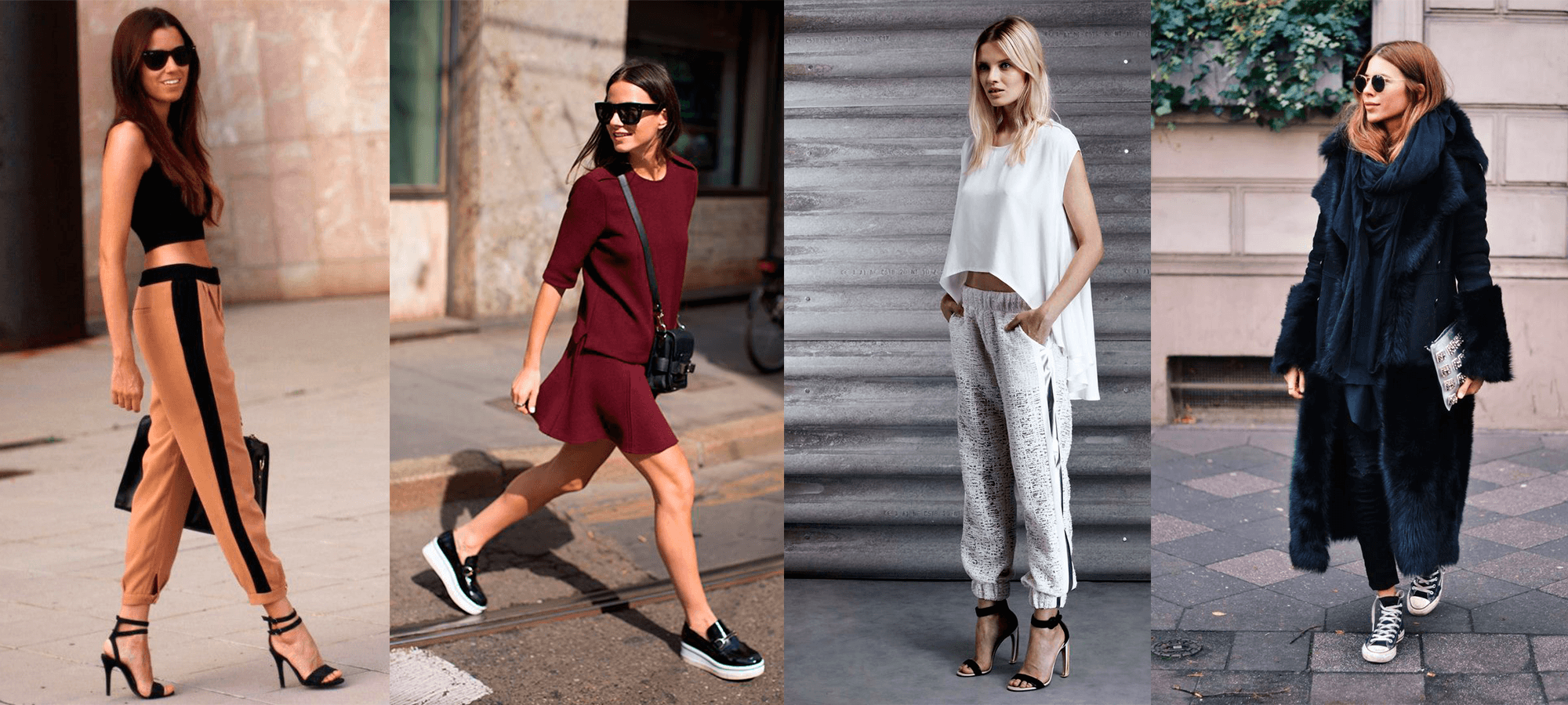 При этом часть комплекта должна оставаться спортивной, а остальная на любой выбор. Главное правило – не переборщить, сочетать несочетаемое – это не значит, что нужно выглядеть слишком наляписто и походить на петуха.