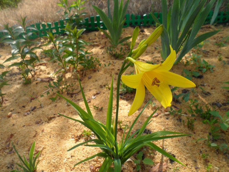 Как-то я увидела такой участок, который меня поразил и запомнился. Но не своей красотой и буйством зелени, а каким-то марсианским видом. На ровной утрамбованной поверхности серого цвета, напоминающей асфальт, ровненько торчат хилые растеньица, без единого сорнячка.