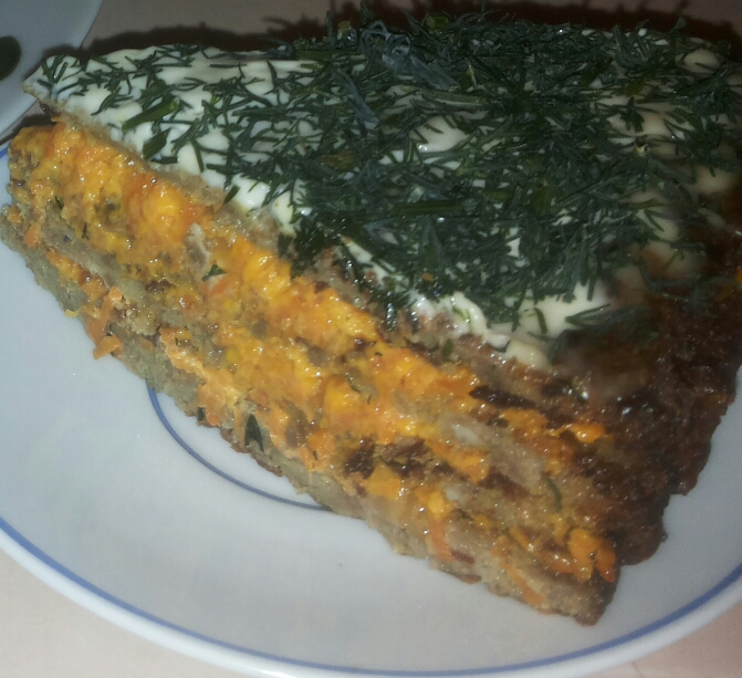 Для начинки и прослаивания печеночного торта существует много рецептов: с рисом, с луком, с зеленью, с чесноком. Но я все же отдаю предпочтение начинке с морковкой и луком.