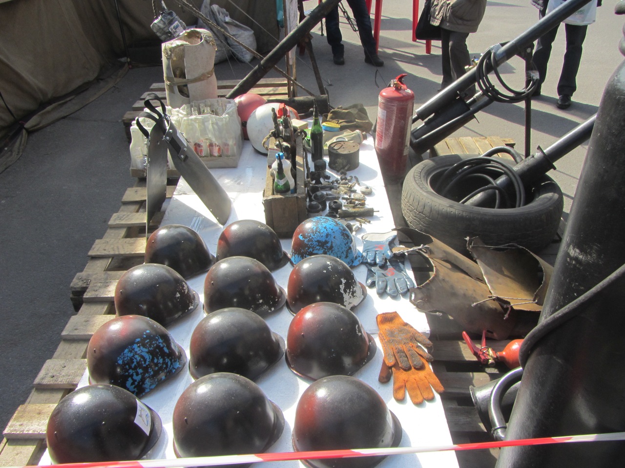 Также можно приобрести и большое количество других сувениров, шарфы, футболки, кружки, значки, флажки и другое. А немного дальше, как вы затем будете наблюдать на моих фото с майдана независимости в Киеве, можно купить и гильзы, и каски, железные бронежилеты со щитами, а под конец даже меня удивившие довольно высоко технологичные духовые пушки, для расстрела сдерживающих беспорядки отрядов милиции.