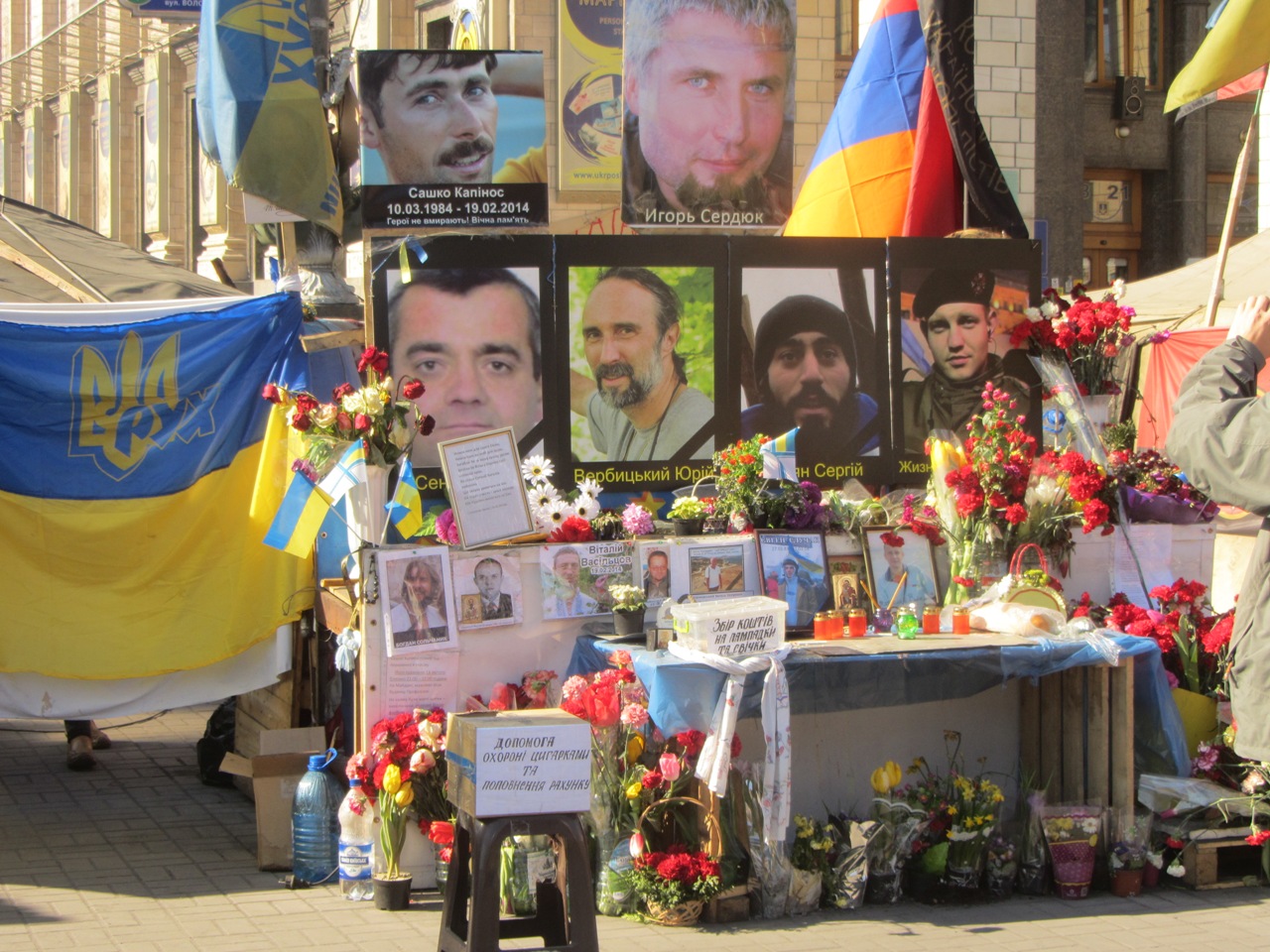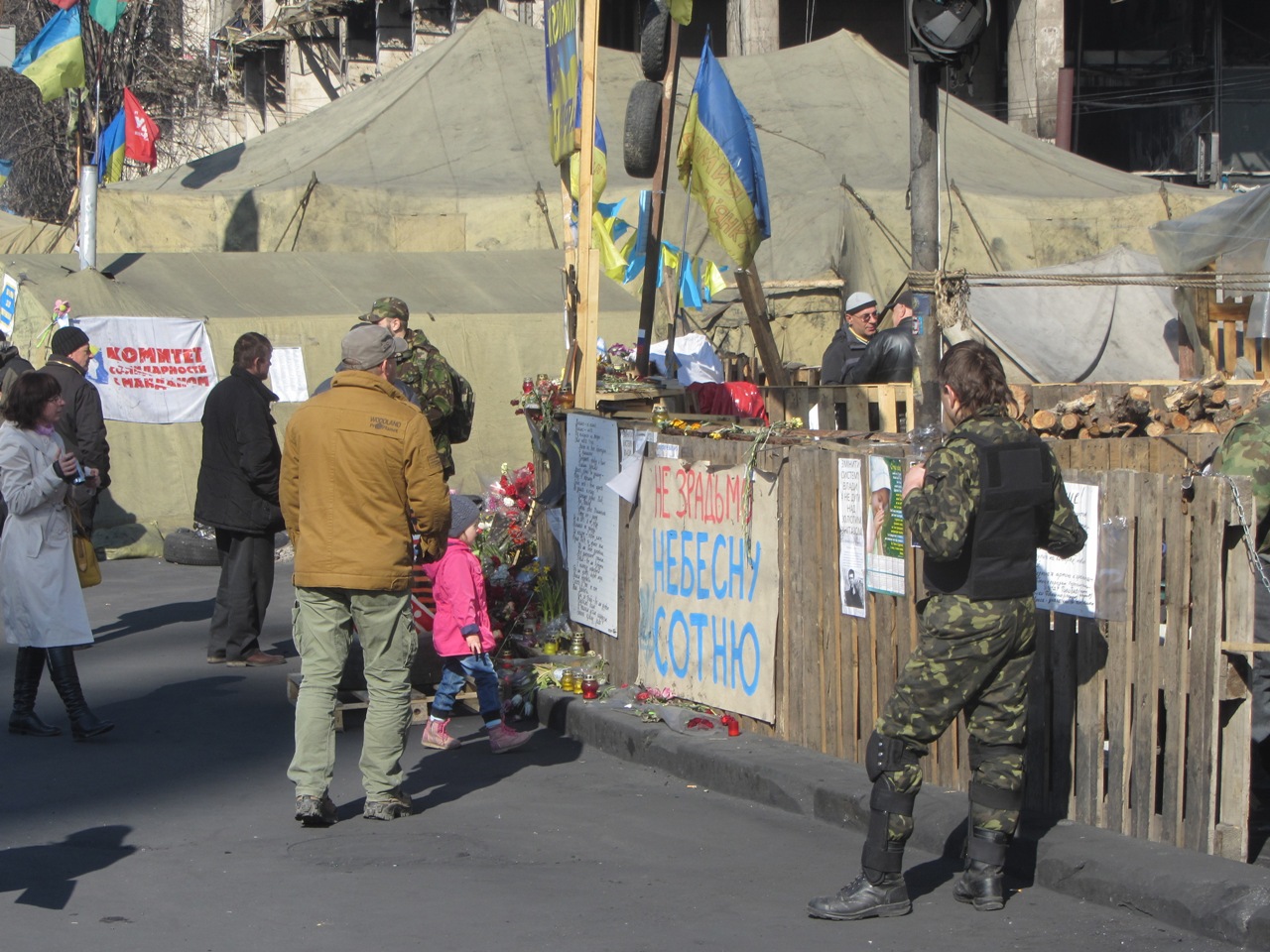 В конечном итоге получилось, что получилось, тут, как я понимаю, недалеко от этого места расположены фото людей погибших на майдане независимости со стороны народа вооруженного камнями, палками и зажигательными смесями.