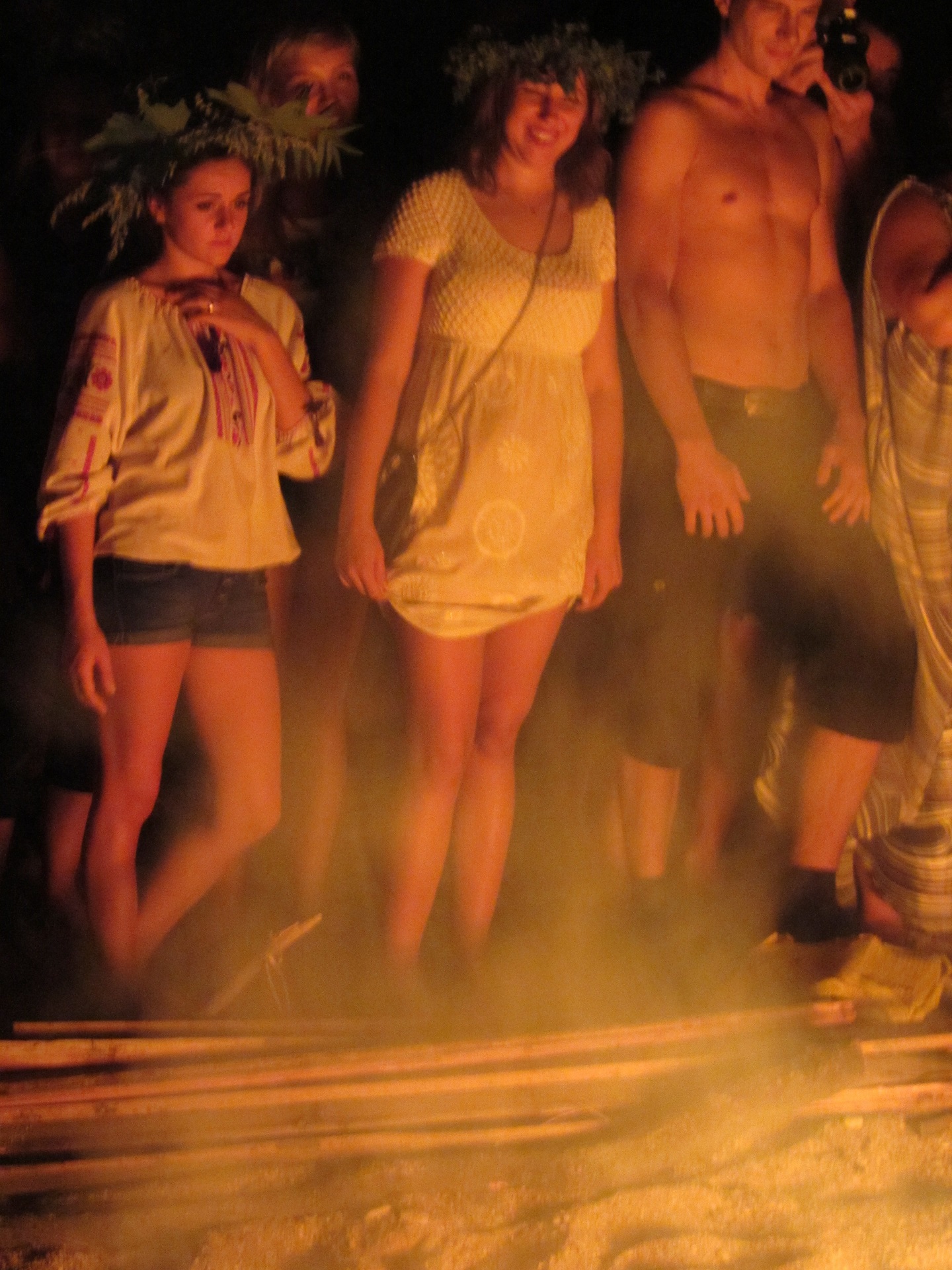 В полночь зажигается колесо, и катят его к воде. Под песни девушек пары идут купаться в реку, обнажившись, а далее творить любовь.