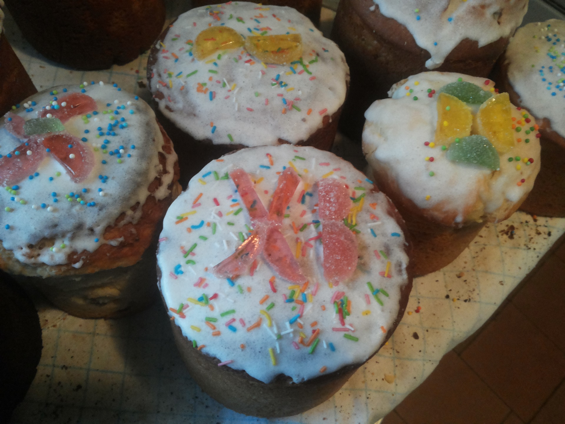 Когда все ваши куличики остынут, их конечно же необходимо украсить. Легко и просто купить глазурь в магазине, развести, как сказано на упаковке, и намазать пасочки сверху.