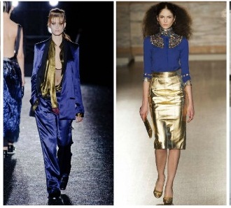 Для торжественного мероприятия или официального выхода, стоит выбрать комплект из одежды сапфирового синего цвета и металлика, особенно изысканно будут смотреться серебряный и золотой. При этом серебряный выглядит более строго и аристократично, тогда как золотой придаст роскоши и богатства образа.