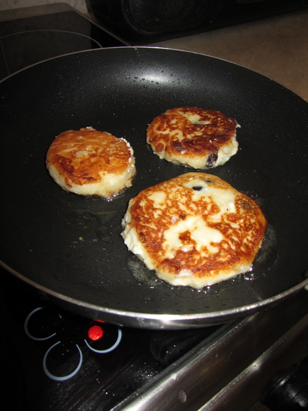 Это также очень простой рецепт сырников. Что получилось в итоге, вы можете видеть на фотографии. И хотя творога хватило всего на 3 сырника с изюмом, но зато они здорово разнообразили наш простой рецепт.