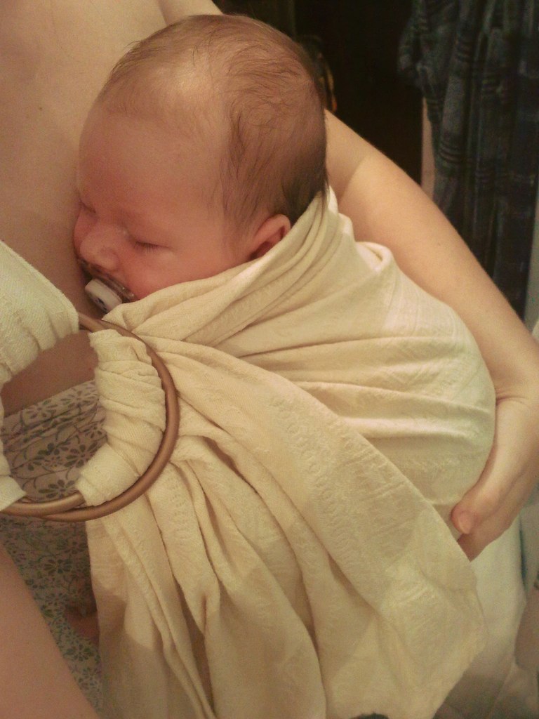 Слинг с кольцами отличный помощник для молодой мамы, но в этом шарфике есть один минус- нагрузка идет только на одно плечо.