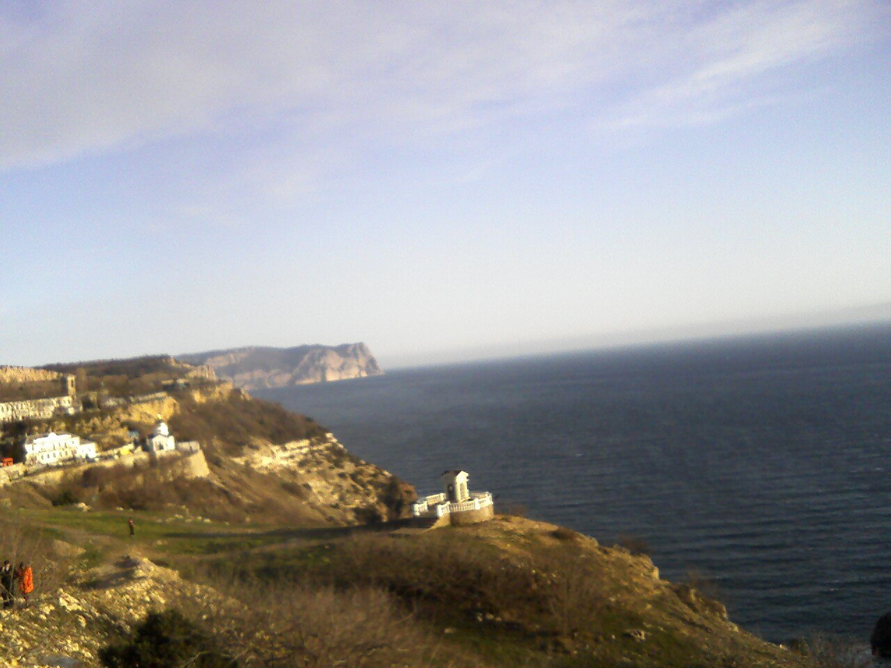 Здесь у мыса Фиолент практически над обрывом, над бездной, зависло несколько монастырских сооружений. А вид с монастырской террасы захватывает дух и приводит в изумление, если вы попали в это место впервые. Не зря это святое место навещал А.С.Пушкин, да и цари российские заглядывали и восхищались местом сим диковинным.