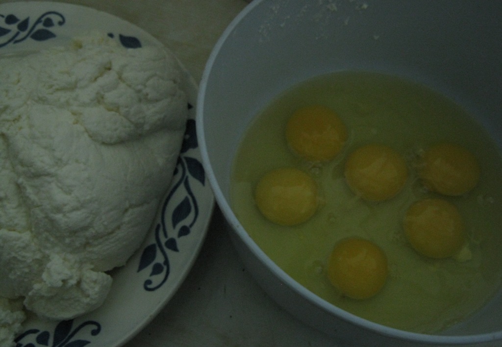 И так, на 1 кг творога берем 4-9яиц (на фотографии использовано 6 яиц) разбиваем и взбиваем, в какой-то емкости миксером или тем, что у вас есть под рукой.