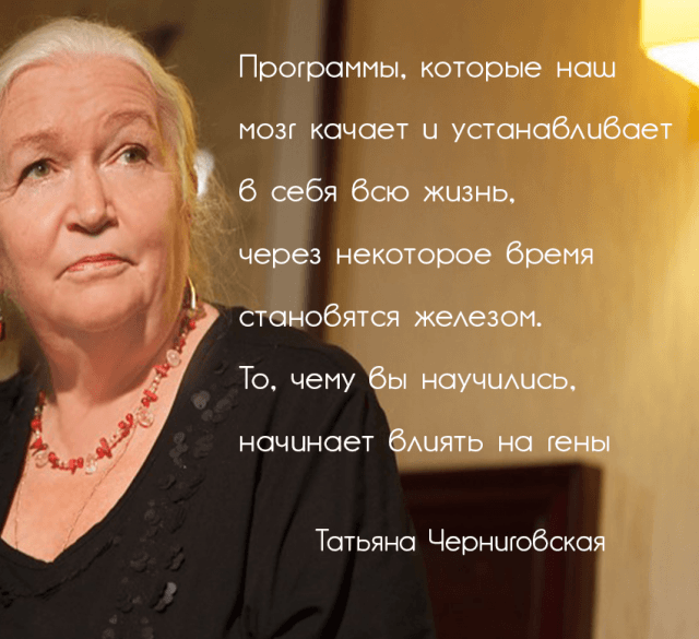 Что Татьяна Черниговская говорит о мозге? Мозг как вселенная. Нет ничего на этой земле сложнее мозга, и мы еще до конца не знаем, как он работает. Обычными людьми считается, что мы сознательно принимаем решения. Но на практике большинство вещей никогда не попадает в наше сознание. Мозг фактически всё делает сам.
