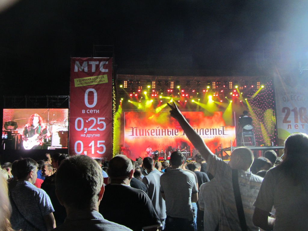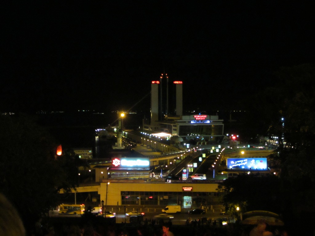 На фото как раз я кушаю довольно вкусный шашлык на не очень шумной, но и не очень дорогой Одесской дискотеке в Аркадии. Для любителей узнать цены скажу, поесть этот шашлык, небольшой десерт с блинами, медом и орехами, и выпить бокальчик вина обойдется довольно недорого, около 25 долларов (200 гривен или около 800 рублей). Эта дискотека кстати находится прямо над песком, и с видом на ночное черное море.