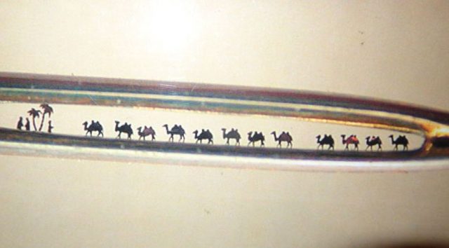 Такая судьба постигла, например, работу Анискина «Караван верблюдов в волосе», которая стоила мастеру очень больших трудов, – волос нужно было просверлить, отполировать, поместить в него микроскопических верблюдов.