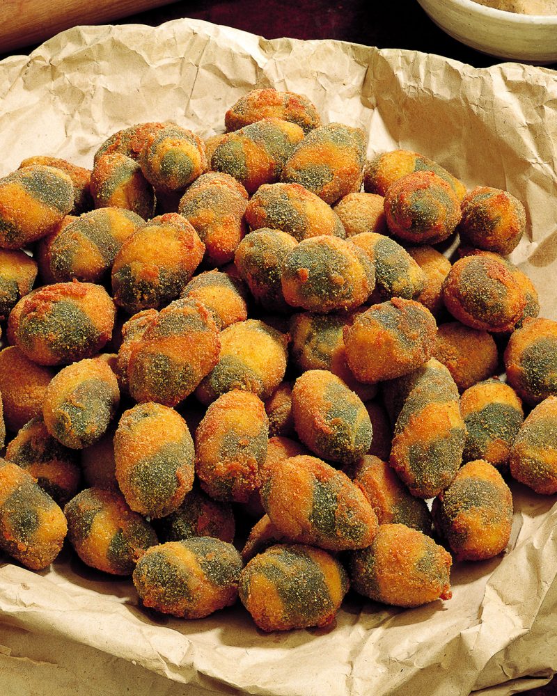 Olive all’ascolana (Оливе Асколана) – гигантский сорт оливок, из региона Марке, фаршированные рубленым пряным мясом, с добавлением пармезана и лимонной цедры. Панированные в сухарях и обжаренные в масле. Отлично сочетаются с сухими итальянскими винами, подчеркивая свежесть и аромат букета.
