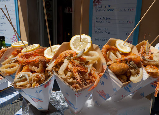 А для любителей морепродуктов, стоит обратить внимание на бумажные свертки-кульки в торговой зоне. Это самая популярная на побережье уличная еда Италии.