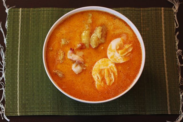 Асам Лакса – сытный, пикантный, густой, сваренный из сухих анчоусов суп, с добавлением креветочной пасты и лемонгресса, а также изобилия азиатских пряностей и специй.