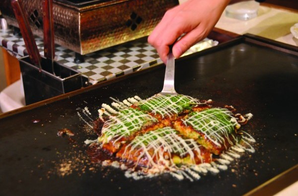 Окономияки – «японская пицца». Одно из популярных и необычных блюд японского стрит-фуда. Основанием для этой пиццы служит лепешка, состоящая из тертого ямса и рубленой капусты, заправленные сырым яйцом. Для начинки используют лапшу, морепродукты, сыр, свинину, овощи, поливают коричневым сладким соусом с майонезом. Сверху укладывают морские водоросли и посыпают стружкой из сушеного тунца.