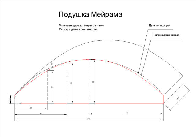 Подушка Мейрама сделана из дерева и имеет размеры 10х27 см. Ее выпуклая форма вроде бы в точности повторяет изгиб позвоночника.
