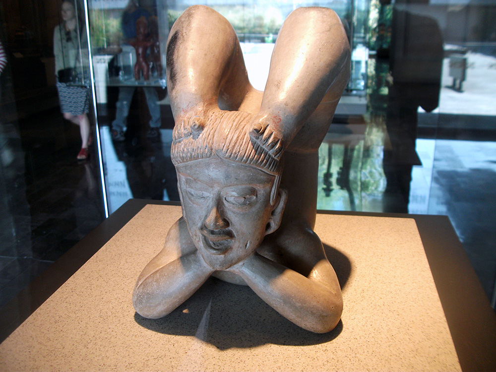 Есть анализ асан не из индийской культуры. Мне особенно понравилась статуэтка из Де Тлатилко (Мексика). На ней изображен «мексиканский йог» в позе скорпиона. Без особой длительной подготовки в такую позу как известно не встанешь.