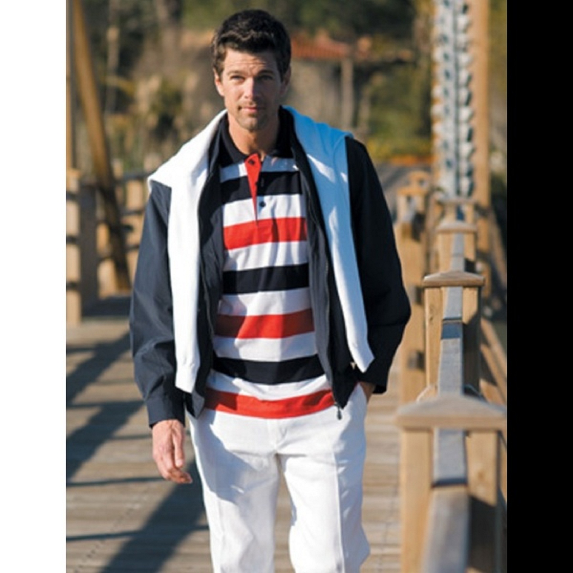 Одежда в морском стиле для мужчин очень разнообразна, поскольку изначально специальный костюм матроса и китель капитана предназначался именно для мужчин. Мужская одежда в морском стиле наиболее уместно смотрится на курорте, однако пиджак, похожий на капитанский китель, подойдет как для деловых встреч, так и для торжественных мероприятий.