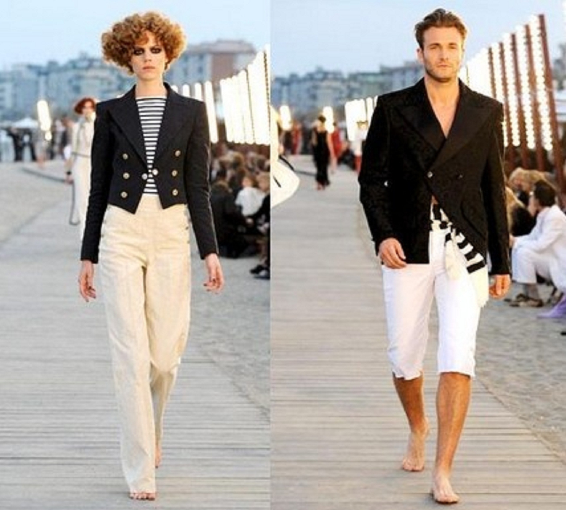Палящее солнце, легкий шум прибоя, лазурь побережья и белые паруса кораблей, — вот с чем у каждого ассоциируется мужская и женская одежда в морском стиле, ставшая уже по праву считаться классикой, актуальной как на отдыхе, так и в городе.