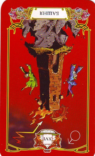 — карта № 4 отвечает на вопрос, заданный Таро. Карта Таро «Башня» в перевернутой позиции советует человеку избавиться от своих устаревших привычек, посмотреть в лицо своему страху и перешагнуть его. Посмотрев внимательно на карту Таро «Башня» мы видим, что на ней изображена молния, разрушающая часть башни. В нашем случае молния уничтожает «мертвый груз» в жизни человека – надоевшую работу, а выпадающие из башни люди – устаревшие привычки, от которых надо избавиться, чтобы идти дальше. Избавившись от работы, не приносящей удовольствия, человек сможет попробовать себя в новых областях знаний, заняться любимым делом, наладить отношения с родными.