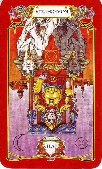 Можно сказать, что оказавшийся в перевернутой позиции «Император» означает моральную неустойчивость, слабость, неопытность, деспотичность.