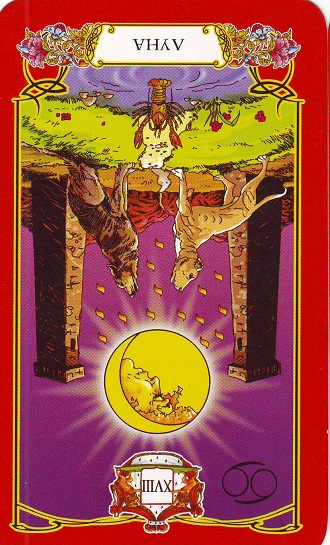— карта №2 расскажет нам об эмоциональной стороне вопроса и о чувствах, влияющих на ситуацию. Карта Таро «Луна» в перевернутом положении показывает, что человек испытывает нервное напряжение из-за сложившейся ситуации на работе, морально подавлен чередой провалов и неудач, но интуитивно понимает, что необходимо что-то менять во избежание полной потери контроля над ситуацией.
